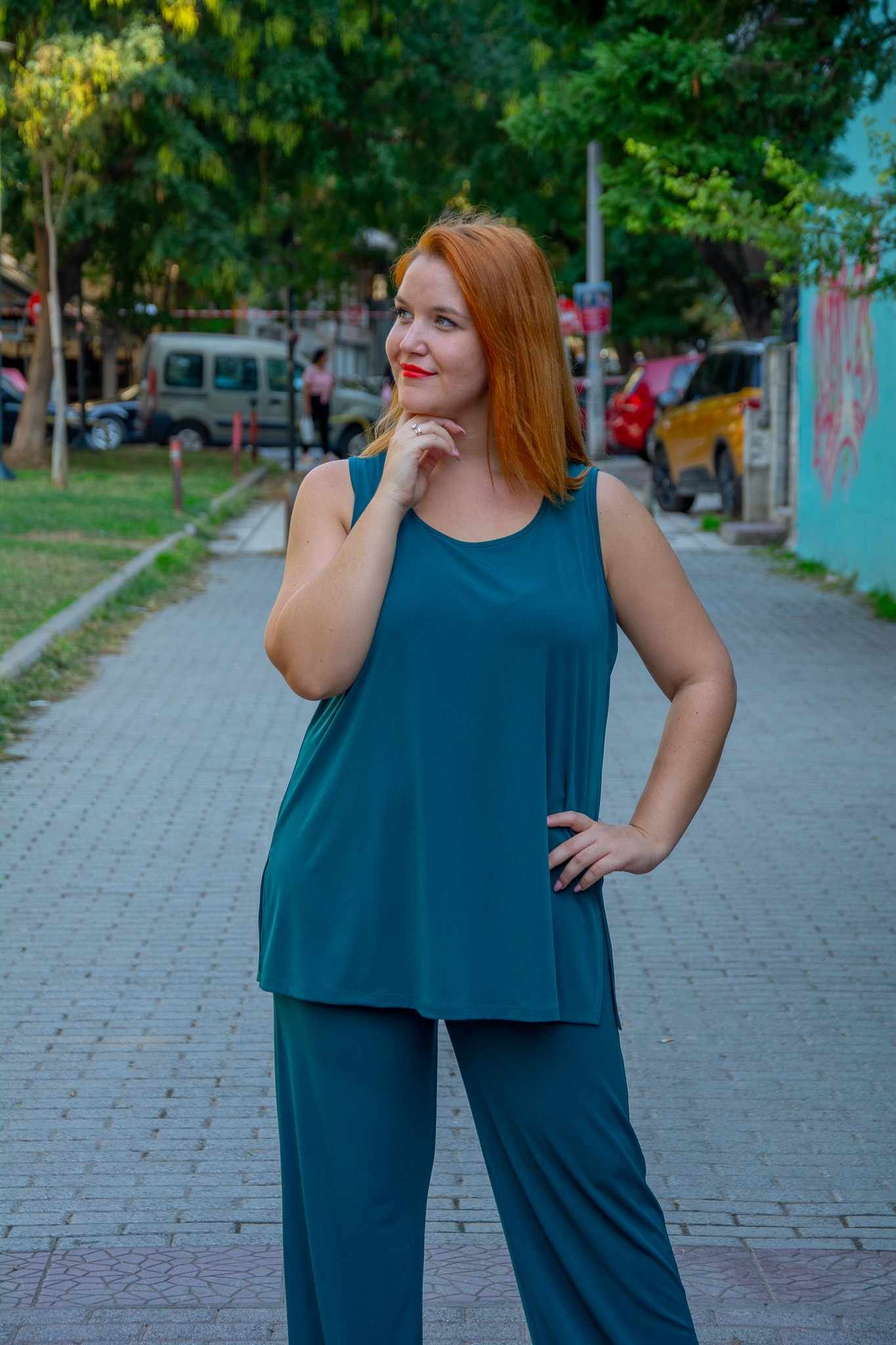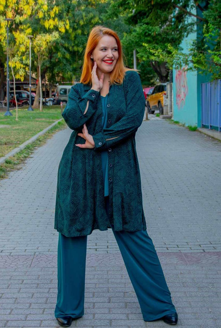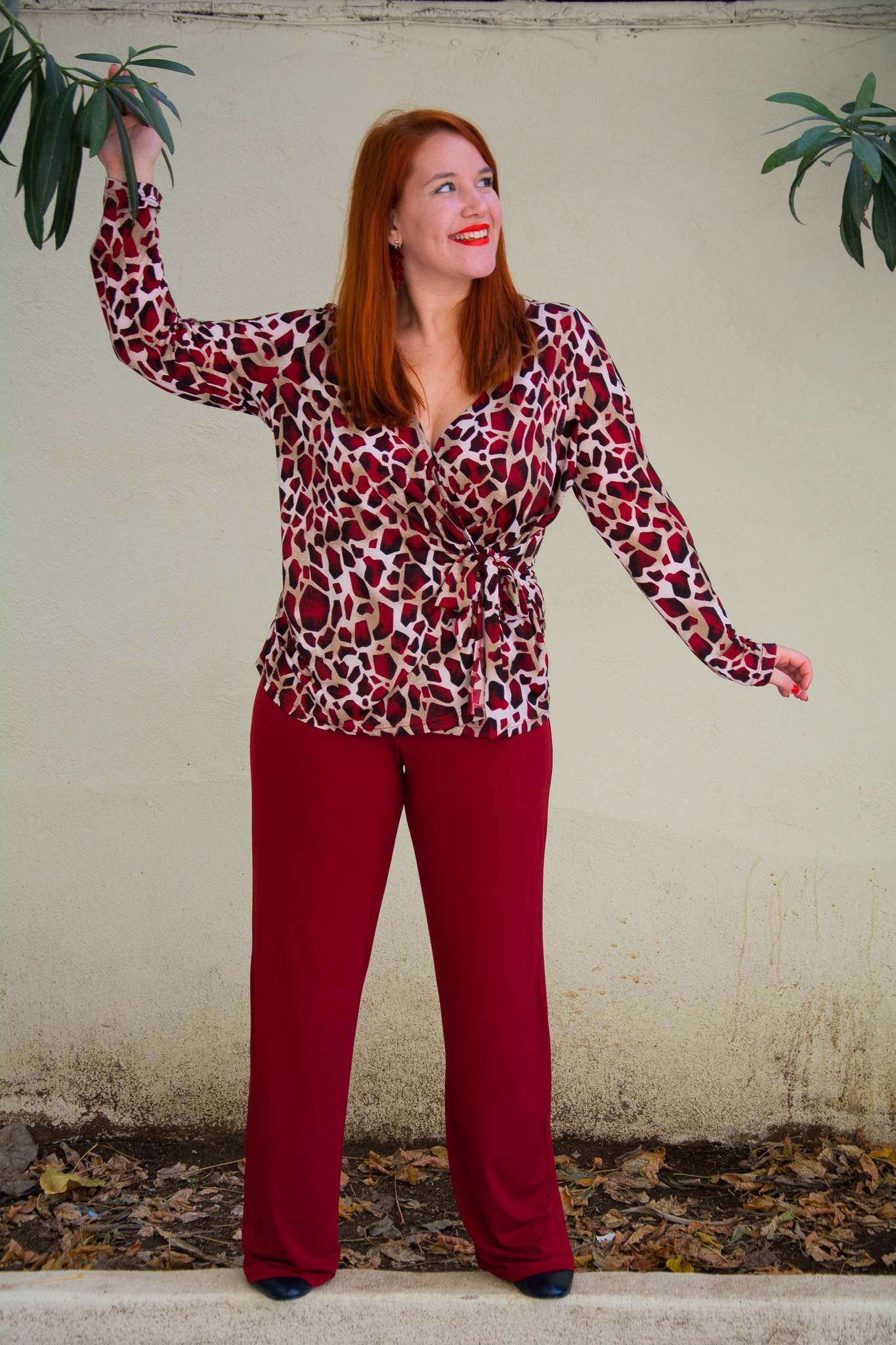 Παντελόνα, σε μεγάλα μεγέθη, με λάστιχο στη μέση και φαρδύ μπατζάκι.