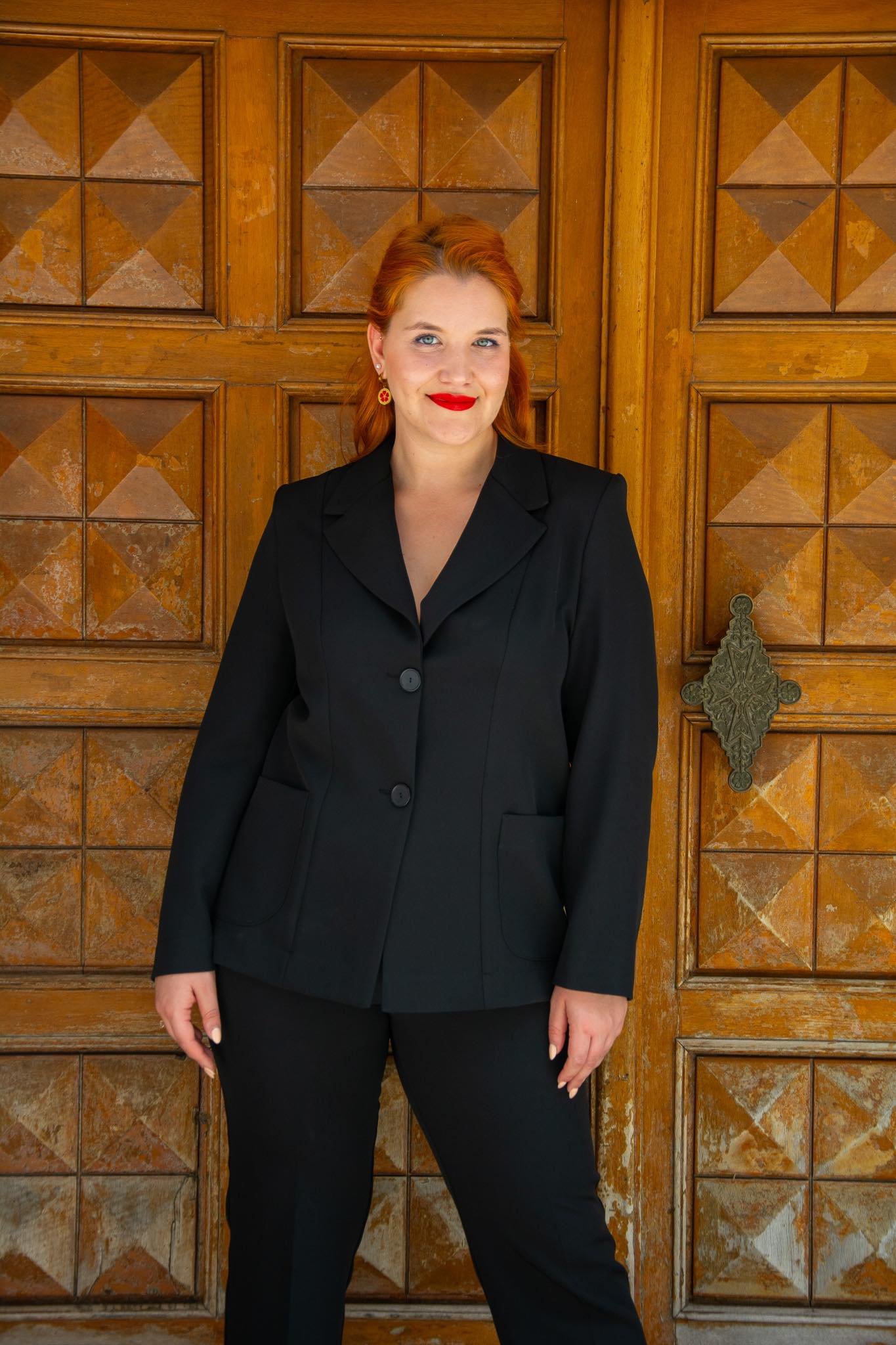 Σακάκι σε κλασσική γραμμή, σε μεγάλα μεγέθη, με πέτο γιακά, 2 κουμπιά και τσέπες.