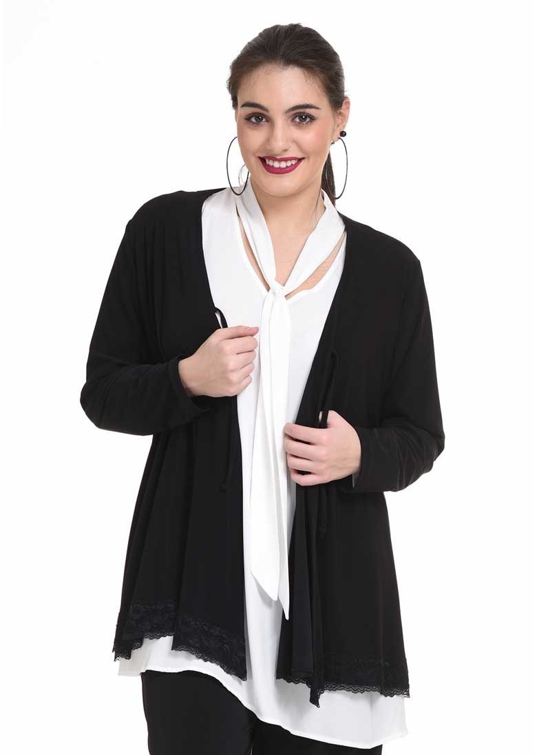 Ζακέτα, σε μεγάλα μεγέθη, με δέσιμο στο εμπρός μέρος.