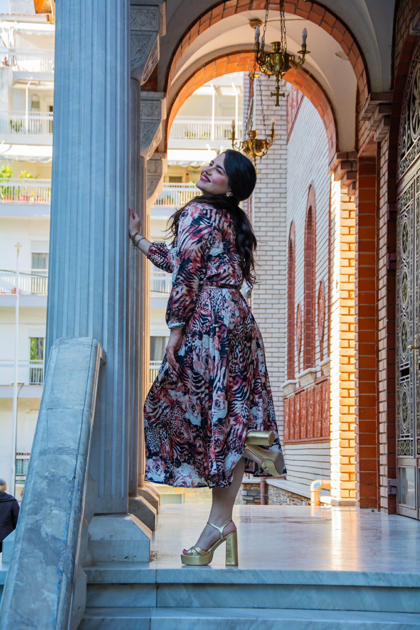 ΦΟΡΕΜΑ FLORAL ΜΙΝΤΙ ΚΡΟΥΑΖΕ ΣΕ ΑΛΦΑ ΓΡΑΜΜΗ ΜΕ ΖΩΝΑΚΙ