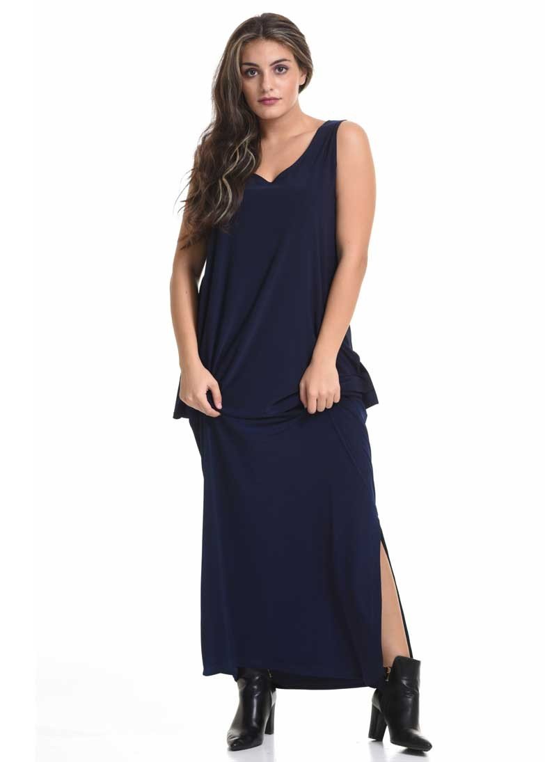 Φούστα μάξι, σε μεγάλα μεγέθη, με σχίσιμο στο πλάι αριστερά και φόδρα.